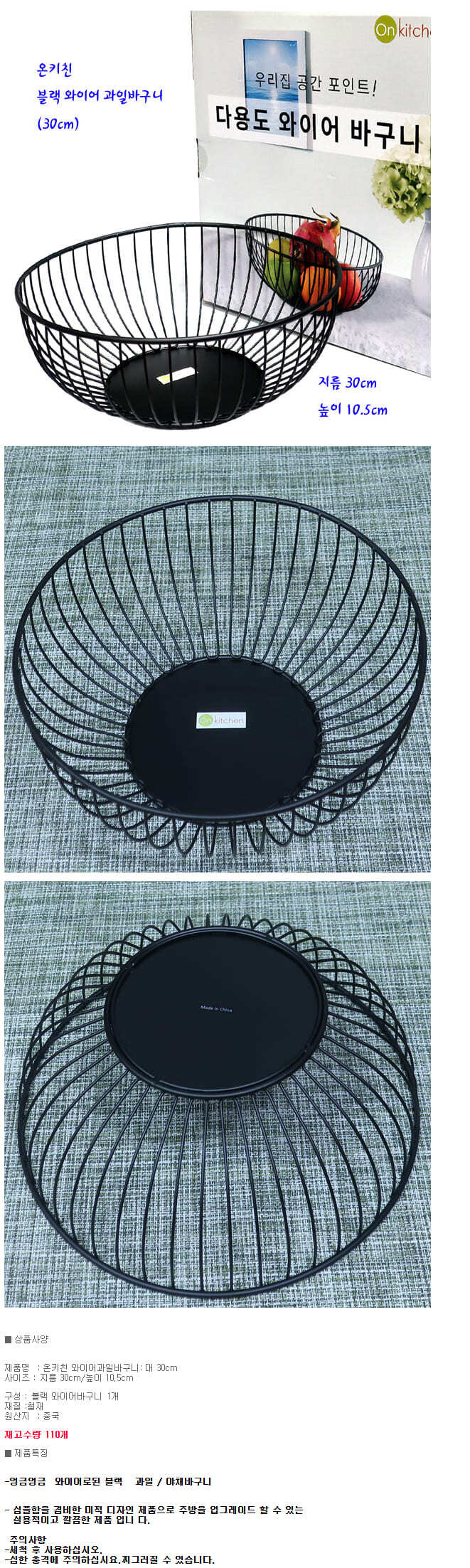 온키친 과일 바구니 와이어 야채 식재료 바스켓 다용도볼 30cm