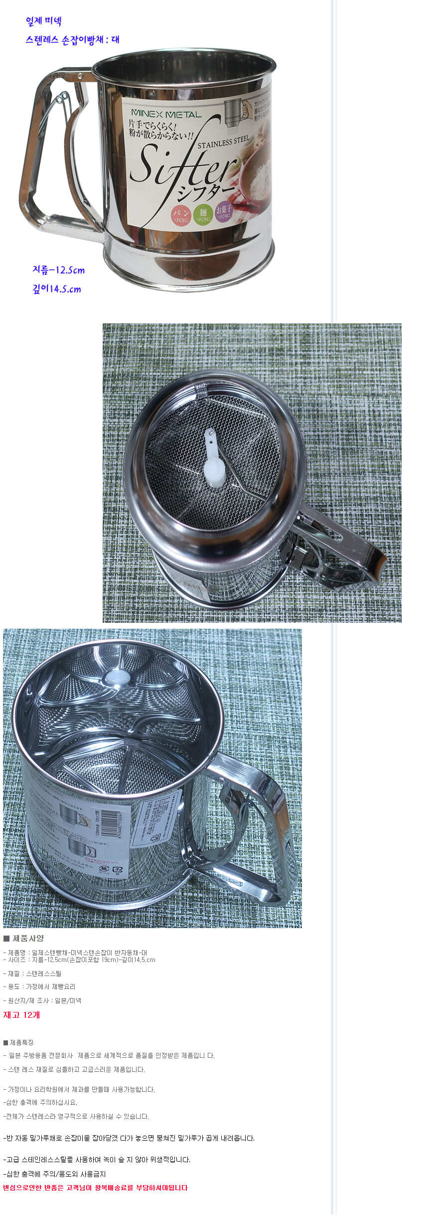 미넥 스텐 채반 제빵 밀가루 채망 손잡이 베이킹 반자동 체망 대