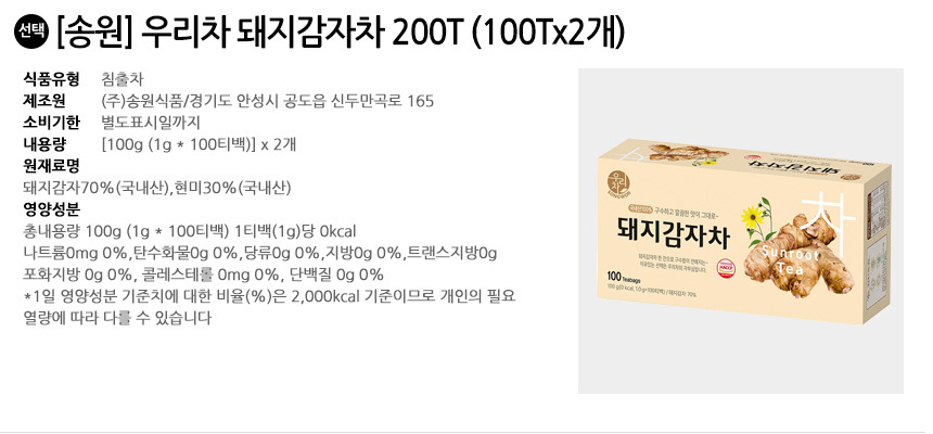 송원 우리차 돼지감자차 200T (100Tx2개)