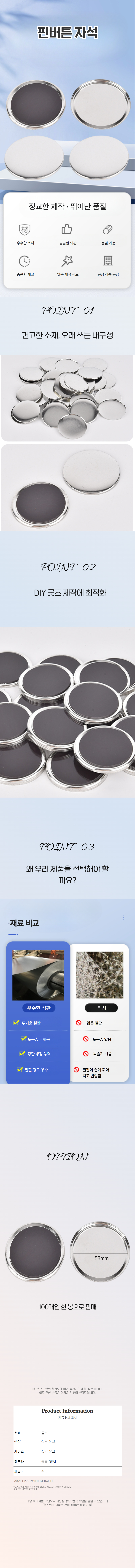 58MM 원형 자석형 핀버튼 키링 금속 DIY 100개입