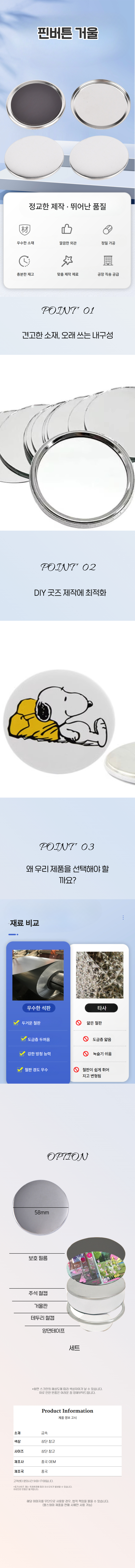세련된 메탈 거울 핀버튼 원형 DIY 세트 58MM 100개