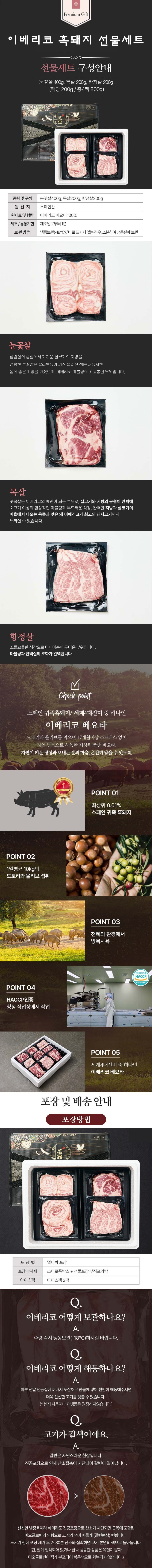 이베리코 돼지고기 선물세트 800g 눈꽃살 목살 항정살