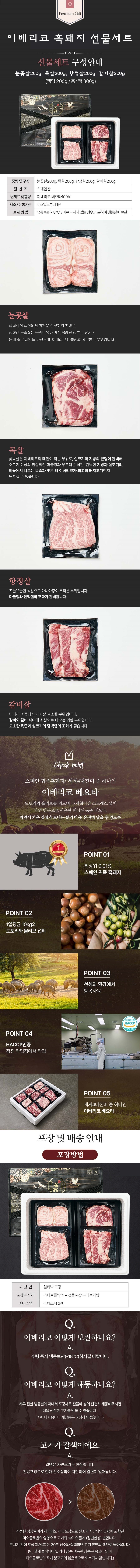 이베리코 돼지고기 선물세트 800g 눈꽃살 목살 항정살 갈비살
