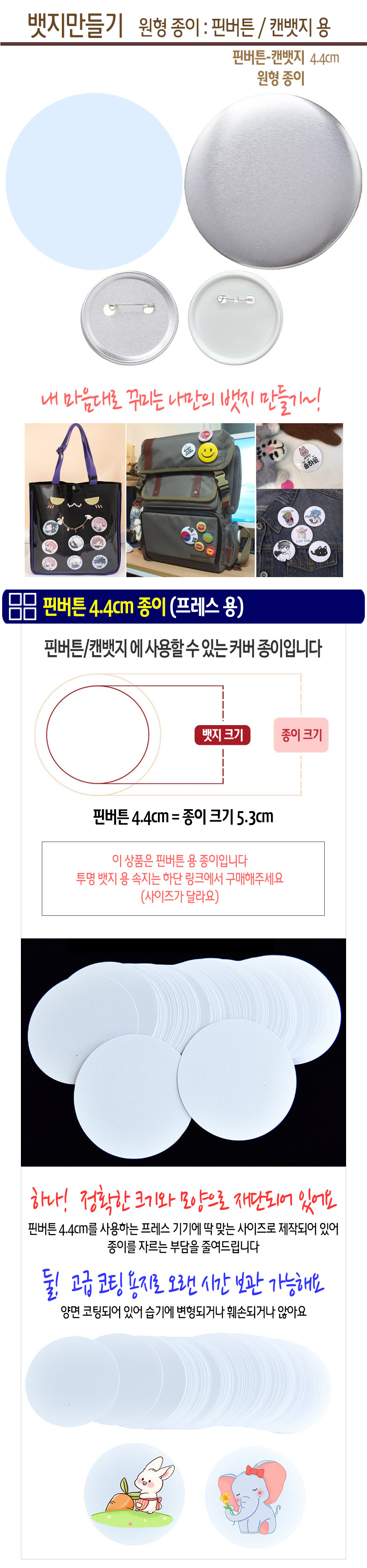 핀버튼 종이 44mm (100장) 커팅지 커버지 원형종이 핀뱃지 캔뱃지 뱃지 만들기 재료