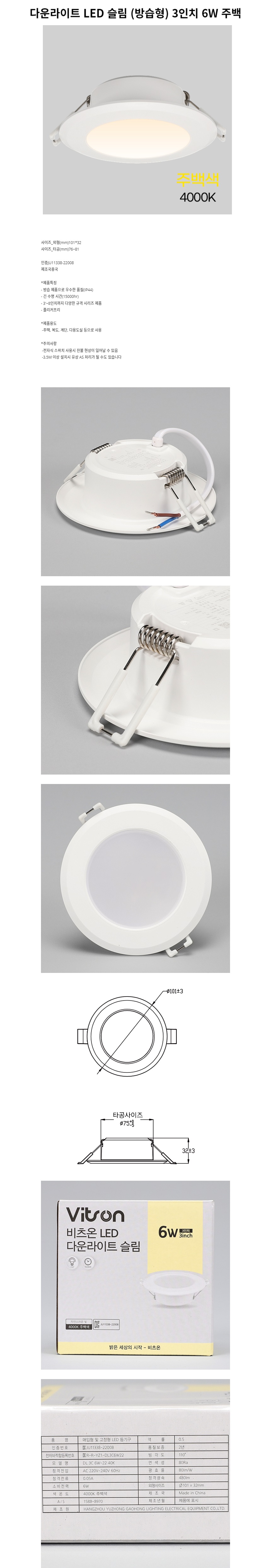 매입등 다운라이트 LED 슬림 방습형 3인치 5W 주백