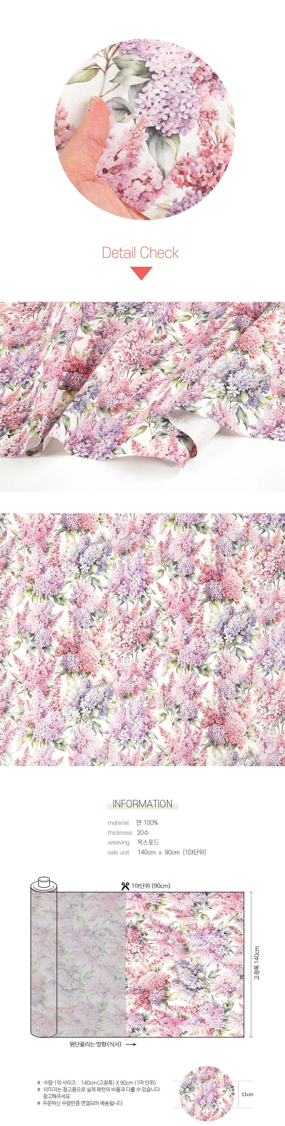 사이즈 : 140cm(고정폭) X 90cm(1마)