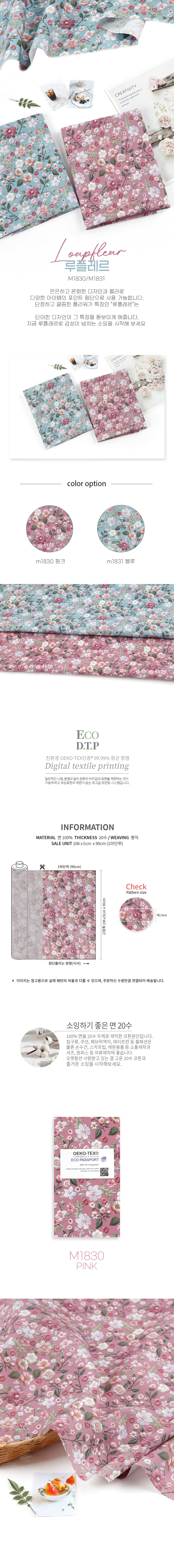 면 원단 플라워 106cm(고정폭) X 90cm 2종