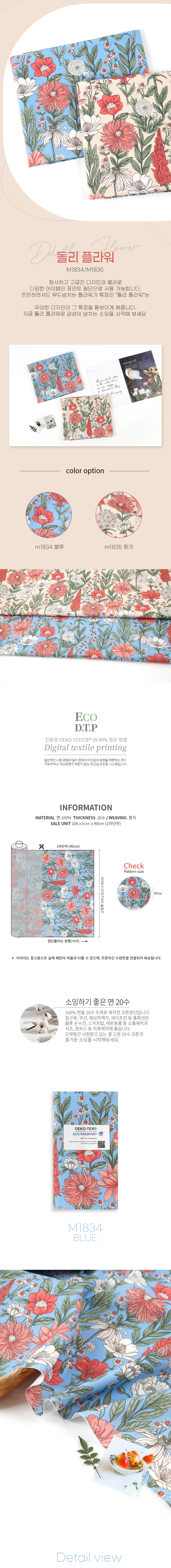 면 원단 화사한 플라워 106cm(고정폭) X 90cm 2종