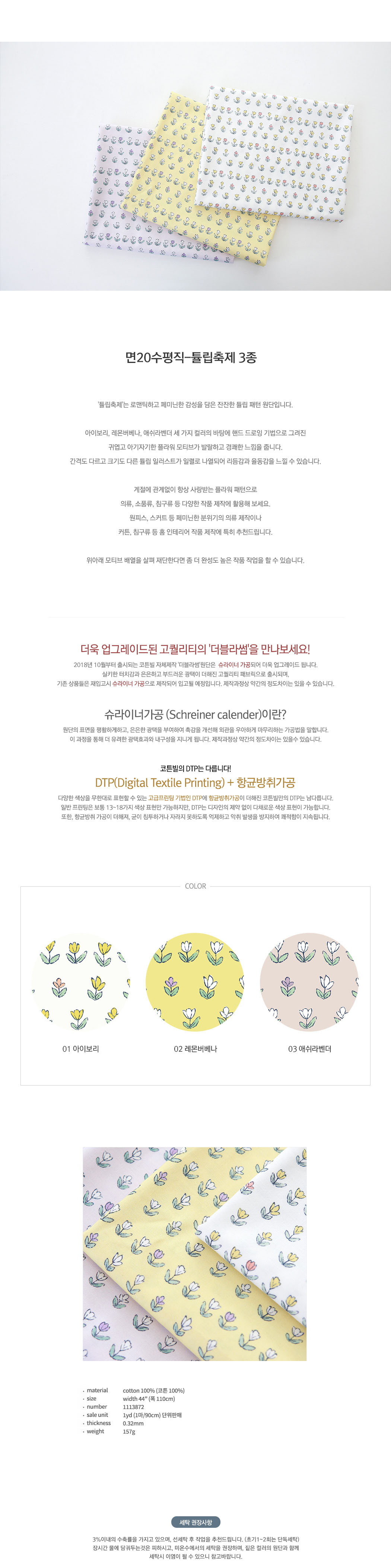 퀼트 면 원단 튤립 가로106cmX세로90cm