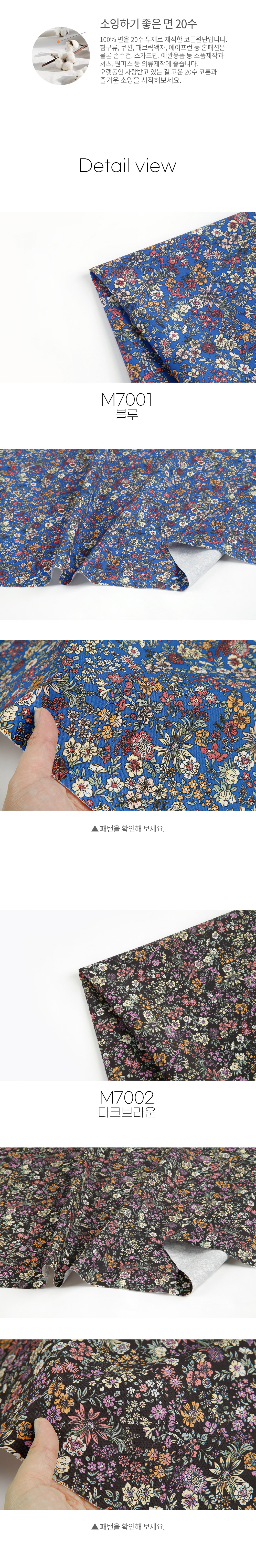 소잉에 좋은 원단으로 100%의  부드러운 면에 20수 두께로 재직한 코튼 원단입니다