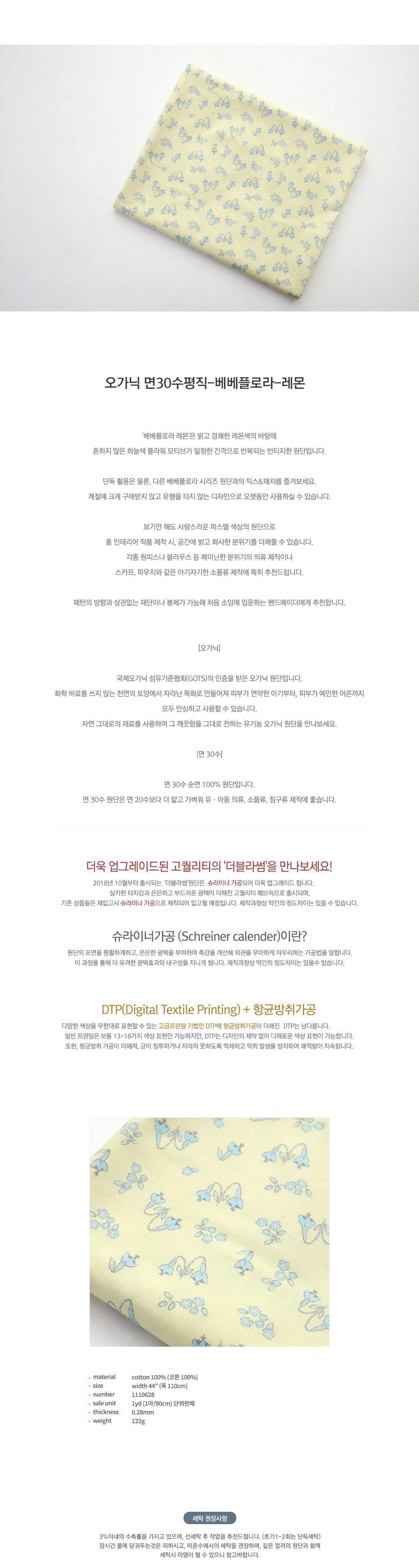 오가닉면 30수 가로110cm X 세로90cm 레몬