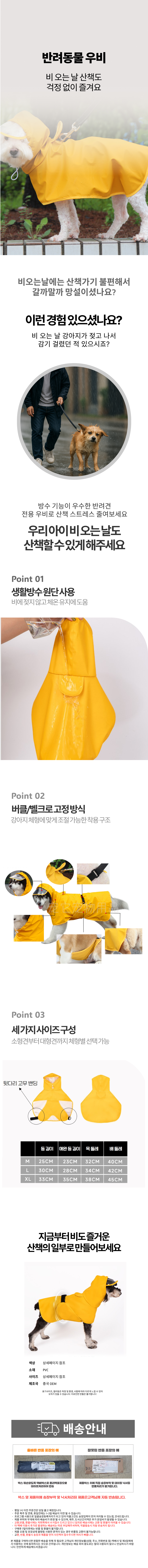 펫 레인코트 비옷 애견우비 반려동물 강아지용 비옷