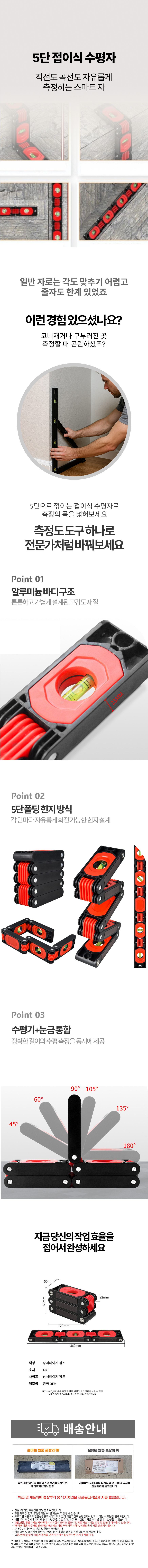 5단 접이식 수평 측정 공구툴 다용도 미니 직각자