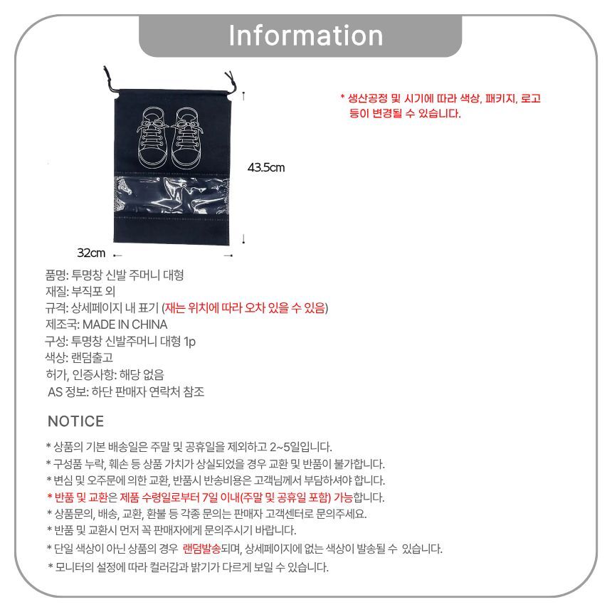 투명창 신발주머니 대형
