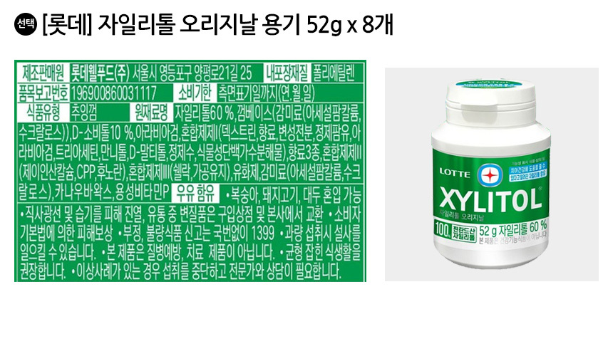 롯데 자일리톨 오리지날 용기 52g x 8개