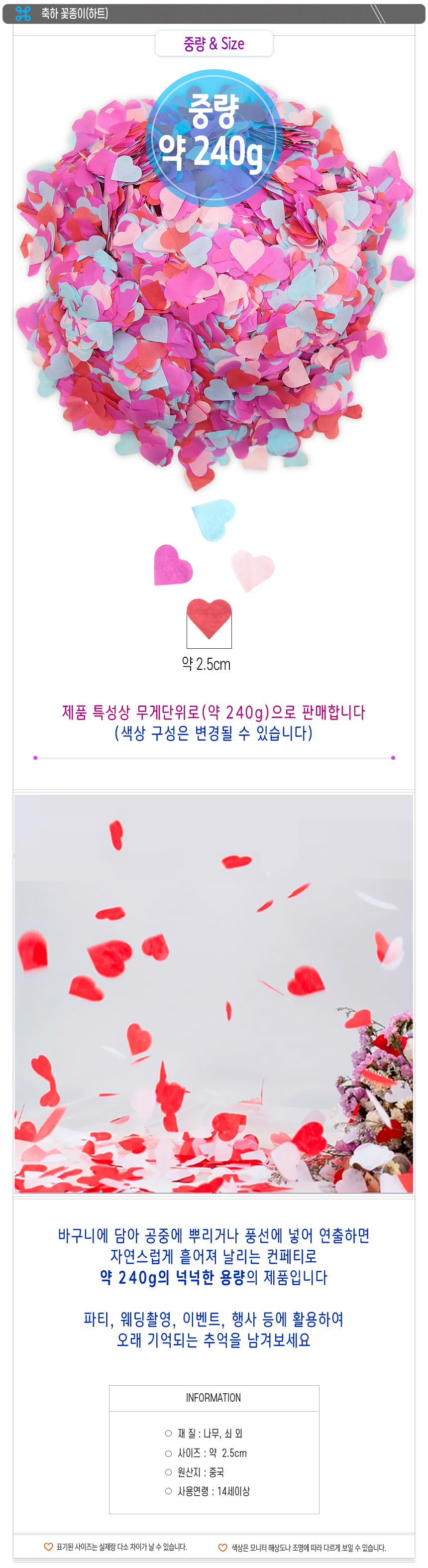 | 제품군 | 기타재화 | 품명 | 축하꽃종이-(하트) |