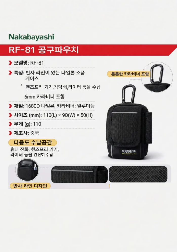 전공벨트 작업 수납 못주머니 110x90x50mm 카라비너 RF-81 공구파우치