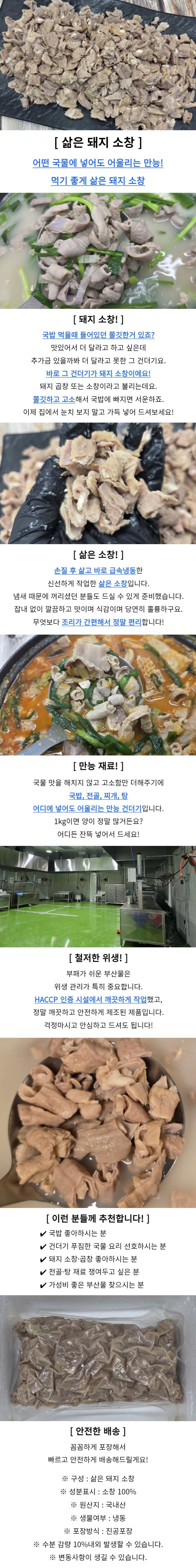 국내산 삶은 돼지 소창 1kg