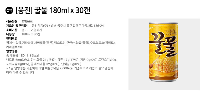 | 영양성분 | 영양성분:상품 상세설명 참조 | 유전자변형식품에 해당하는 경우의 표시 | 유전자변형식품여부:대상아님 |