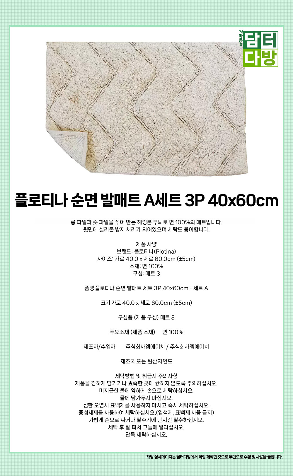 플로티나 순면 발매트 A세트 3P 40x60cm