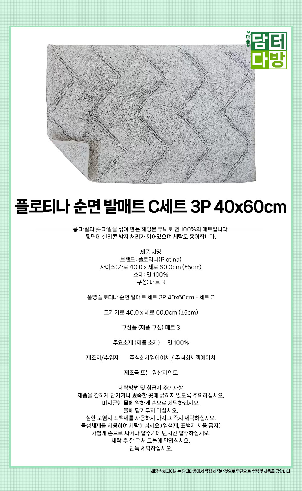 플로티나 순면 발매트 C세트 3P 40x60cm