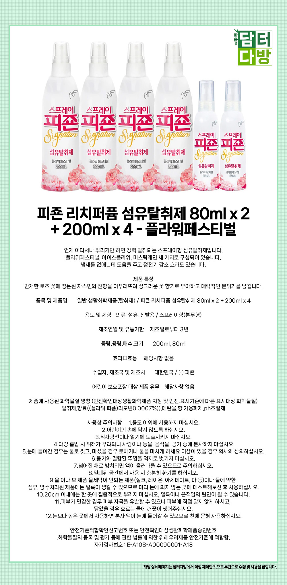 피죤 리치퍼퓸 섬유탈취제 80ml x 2 + 200ml x 4 - 플라워페스티벌