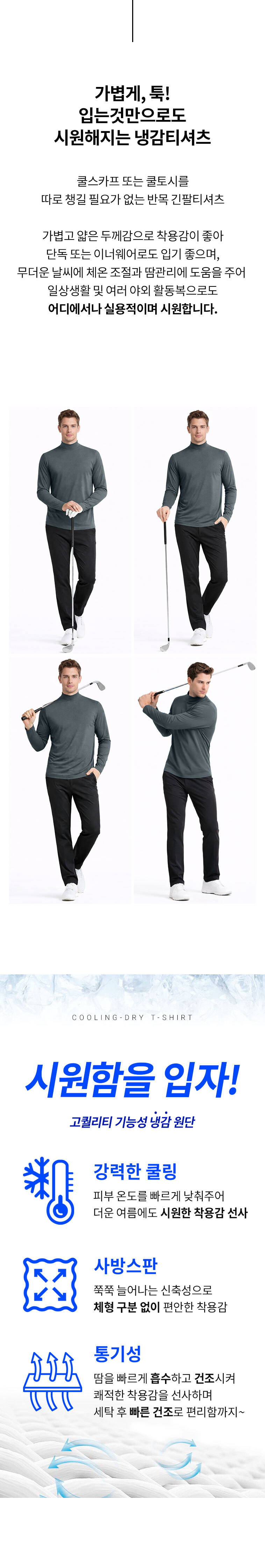(1+1) 남성 냉감 실크드라이 골프 반목 긴팔티