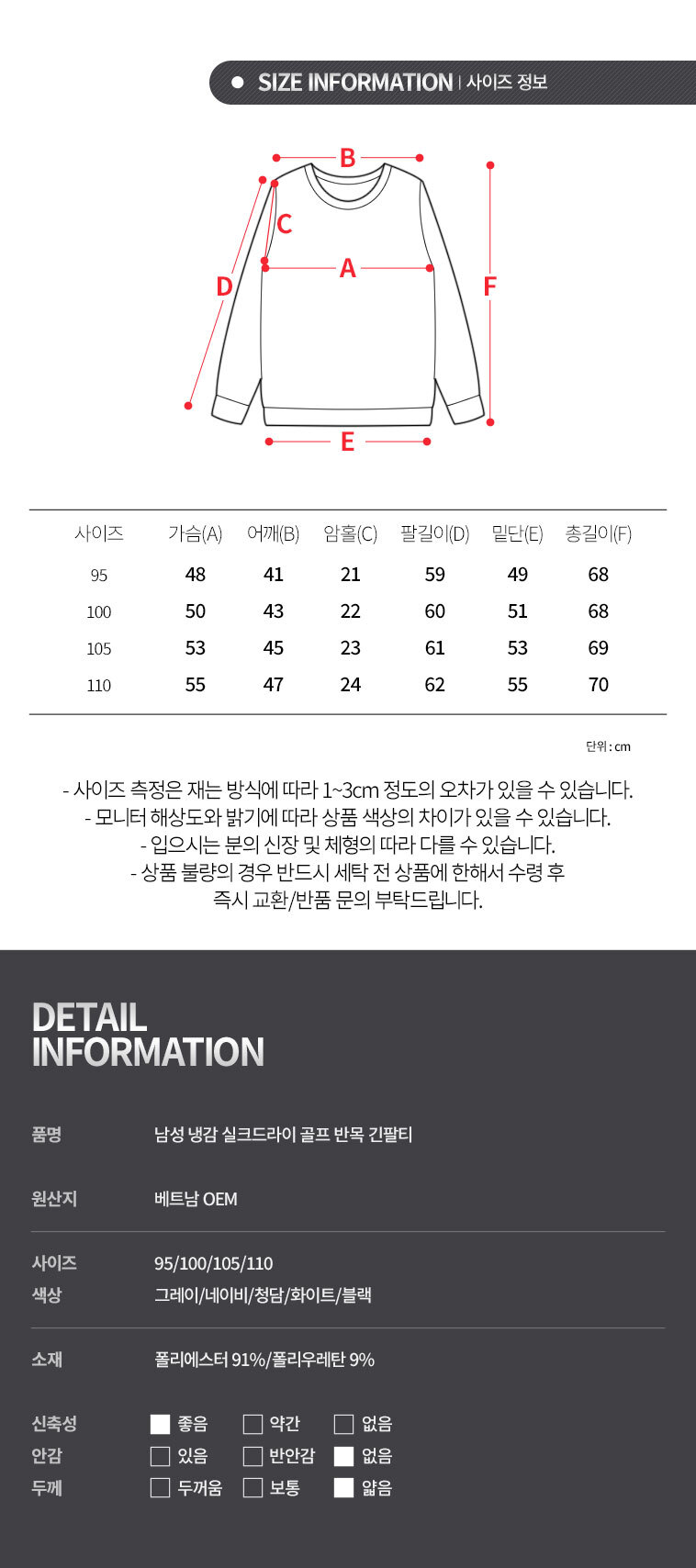 색상 상품 상세정보에 별도 표기 치수 상품 상세정보에 별도 표기