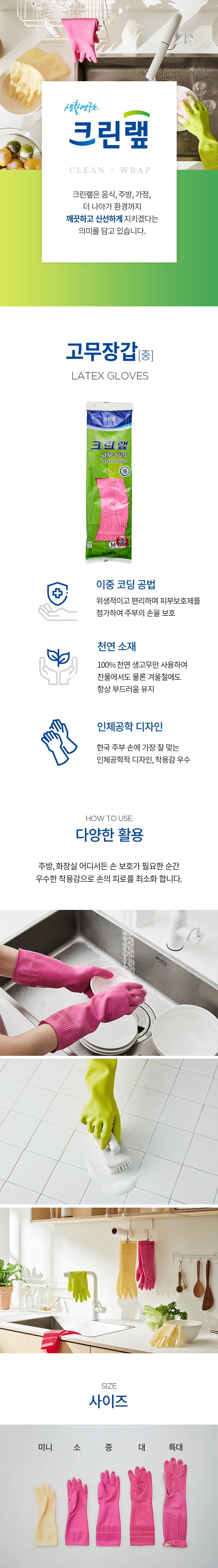크린랲 일반 고무장갑 중형 크린랩 라텍스 글러브 1개입