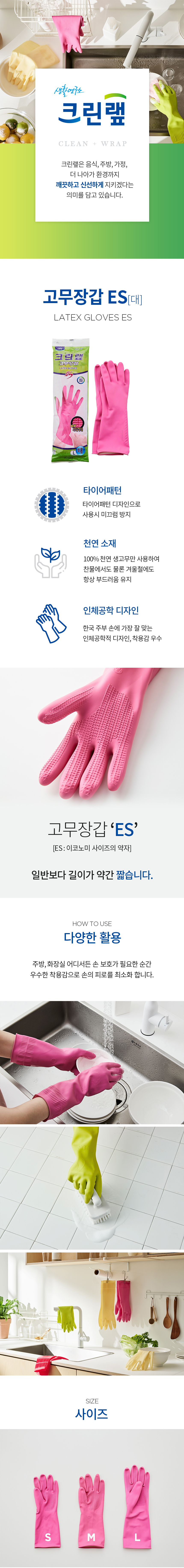크린랲 ES 고무장갑 대형 크린랩 라텍스 글러브 5개입