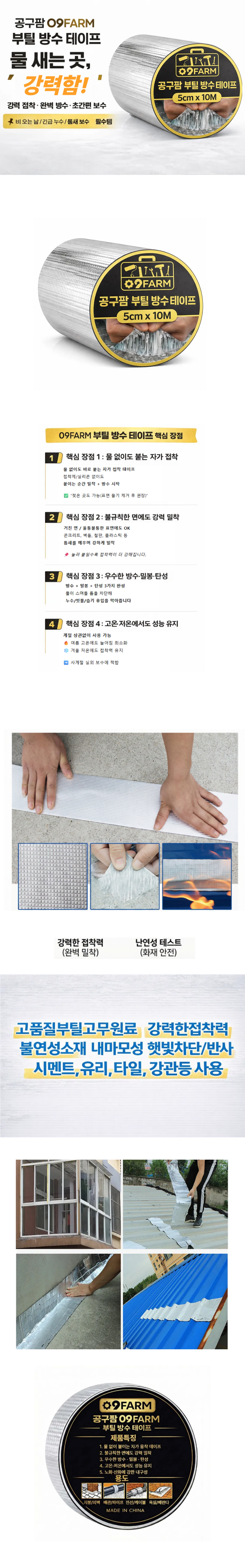 비닐하우스 농막 콘테이너 슬레이트 옥상 부틸 방수테이프 5cmx10m