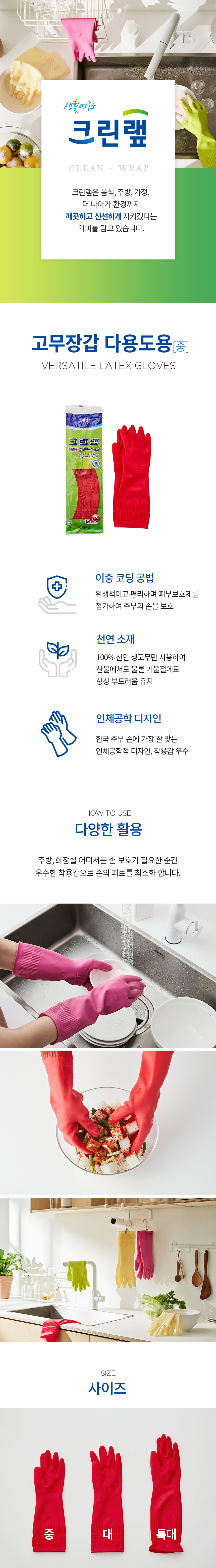 크린랲 다용도용 고무장갑 중형 크린랩 라텍스 글러브 3개입