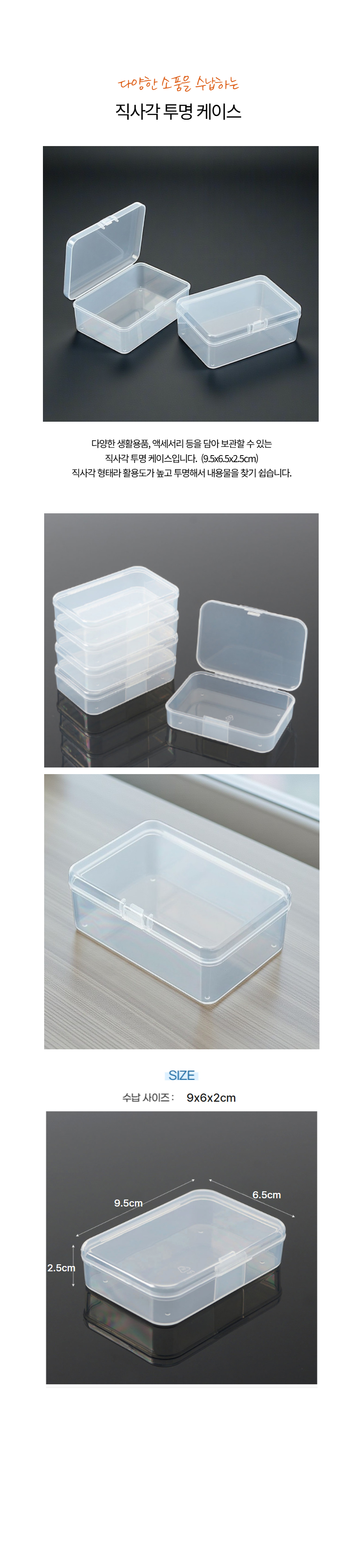 투명 직사각 플라스틱 케이스 1p (9.5x6.5)