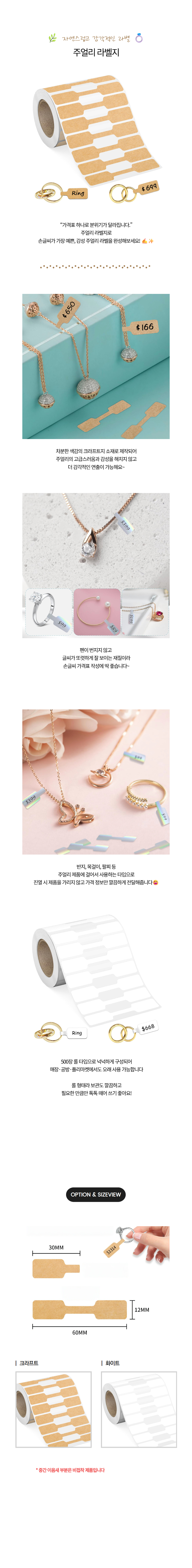 주얼리 택 라벨 스티커 이음새 비접착 1롤