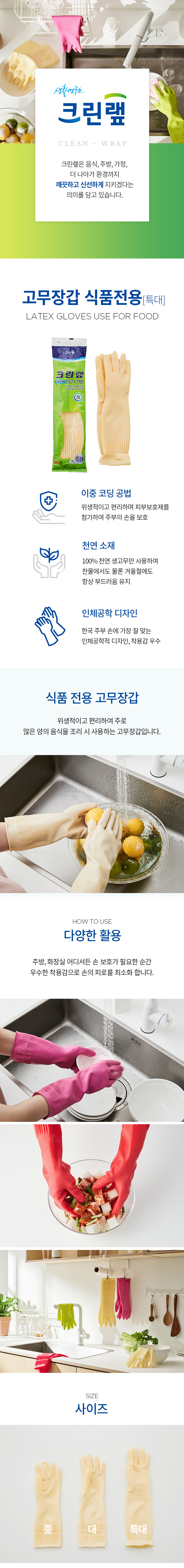 크린랲 식품전용 고무장갑 특대형 크린랩 라텍스 글러브 5개입