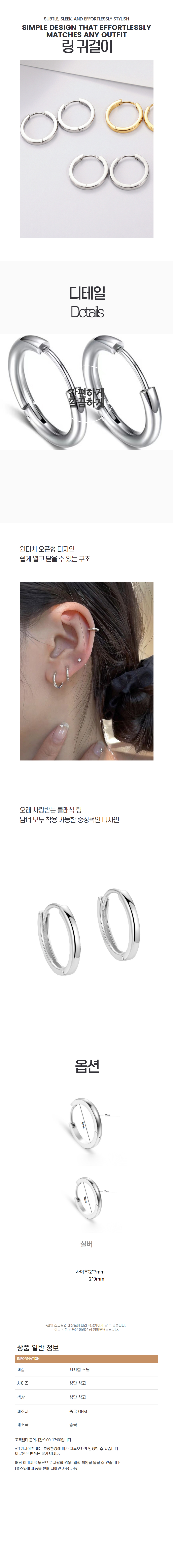 라인 디자인 링 귀걸이 포인트 연출 심플 스타일