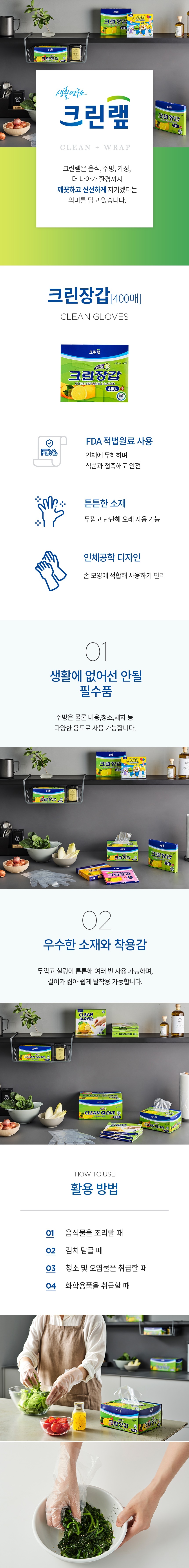 크린랲 일회용 위생장갑 400매입 크린장갑 크린랩 1세트