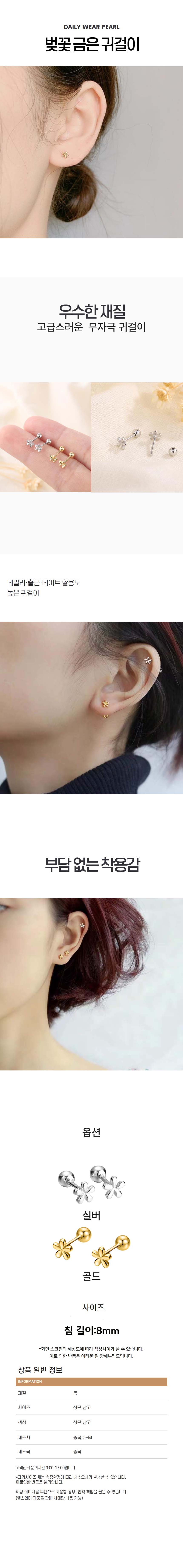 벚꽃 금은 귀걸이 스크류 타입 피어싱 꽃모양 귀장식