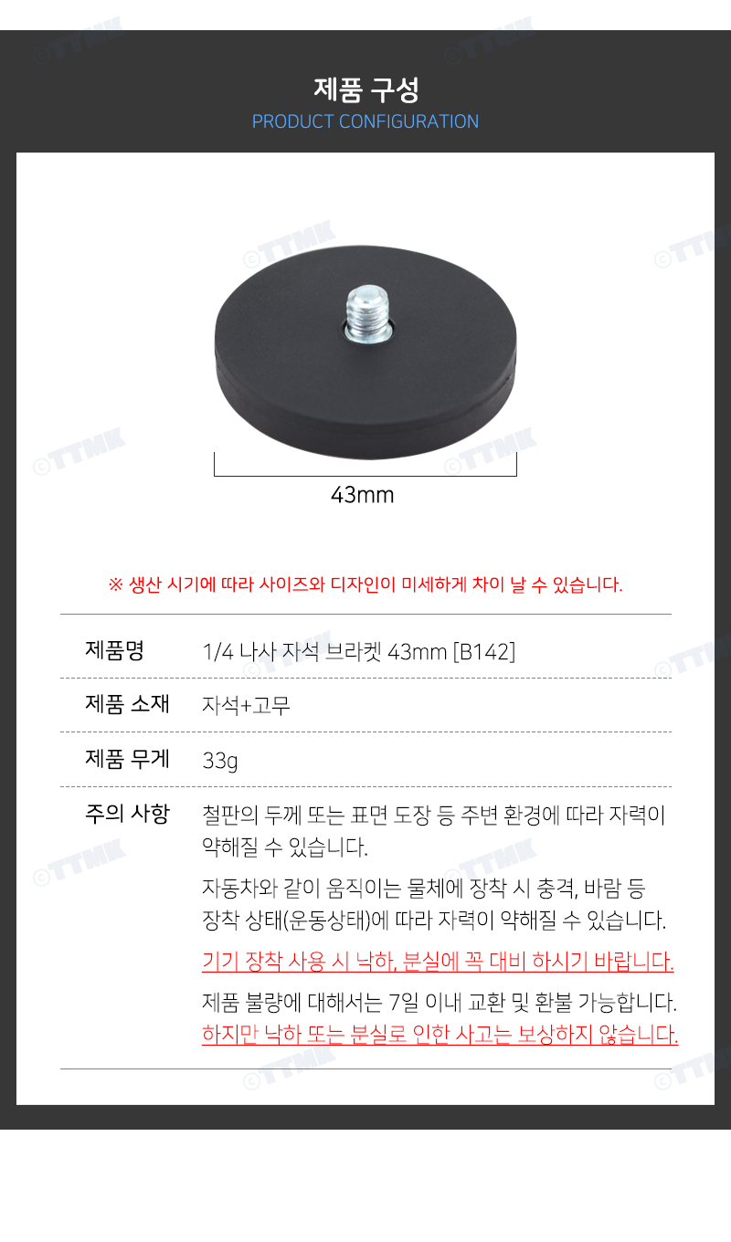 | 제조자(사) | TTMK | A/S 책임자 또는 소비자 상담 관련 전화번호 | 0505-350-2580 |