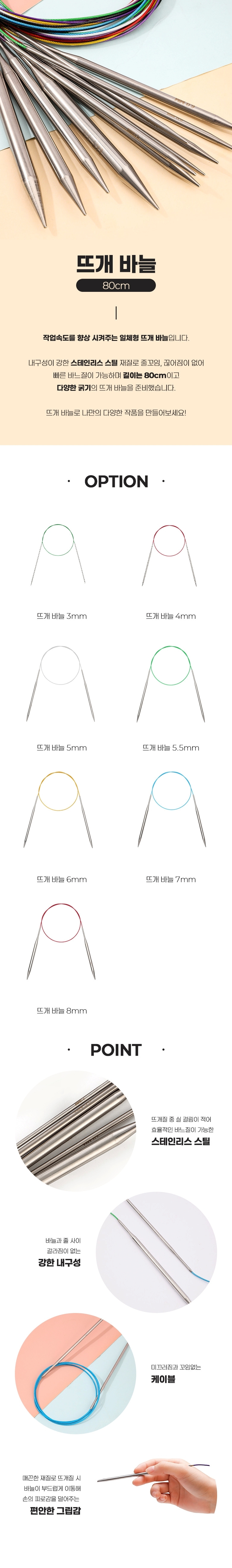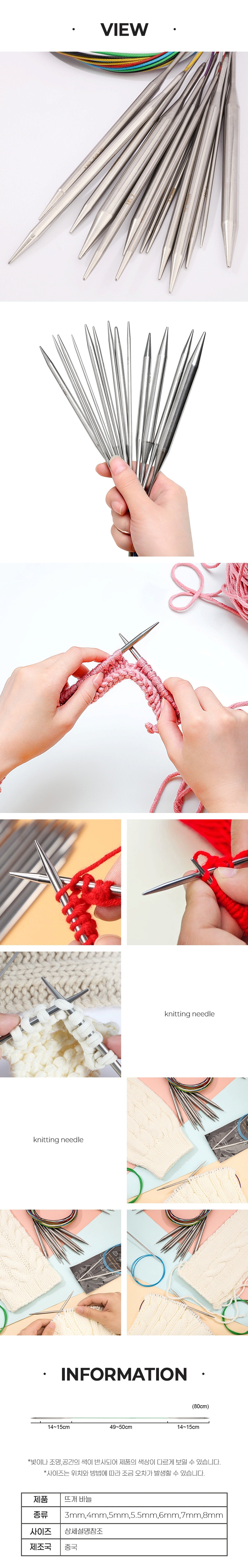 뜨개질공예 스테인리스 80cm 일체형 뜨개 바늘 7종