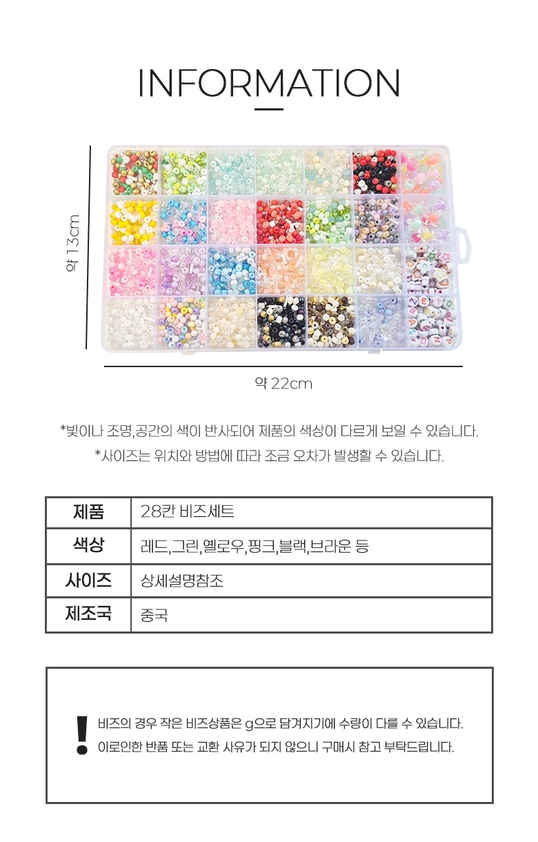 비즈아트 화려하고 눈에띄는 28칸 컬러 시드비즈 세트