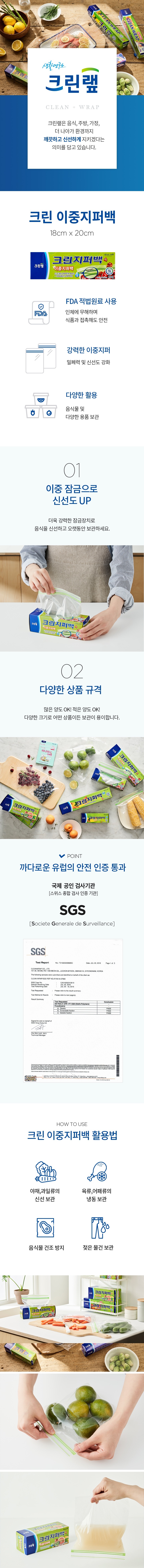 크린랲 이중 지퍼백 18cm x 20cm 소 20매입 1세트 크린랩