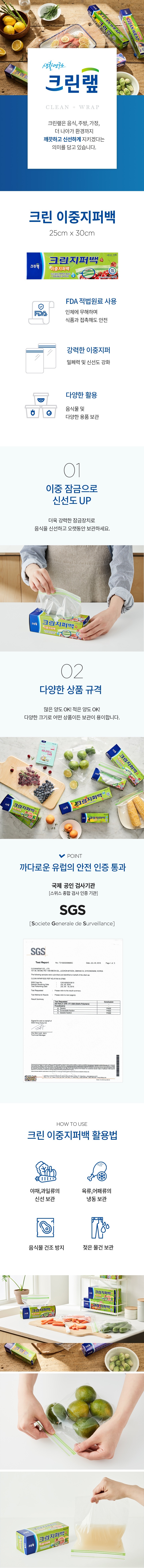 크린랲 이중 지퍼백 25cm x 30cm 대 20매입 1세트 크린랩