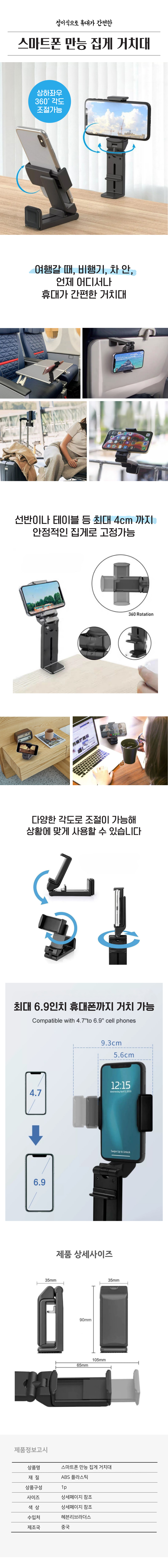 핸드폰 거치대 침대 책상 러닝머신 유모차 마운트 비행거거치대 기내용 각도조절