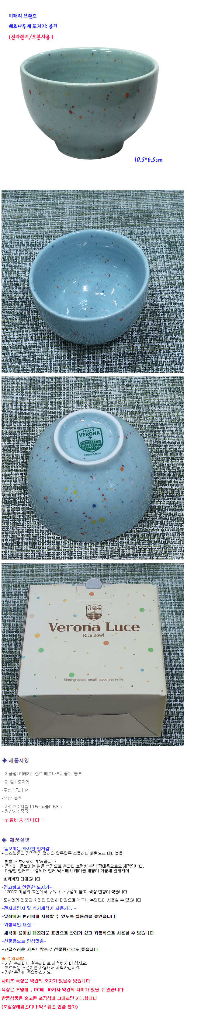 베로나루체 밥그릇 공기 가정 식당 도자기 밥공기 10.5cm 블루