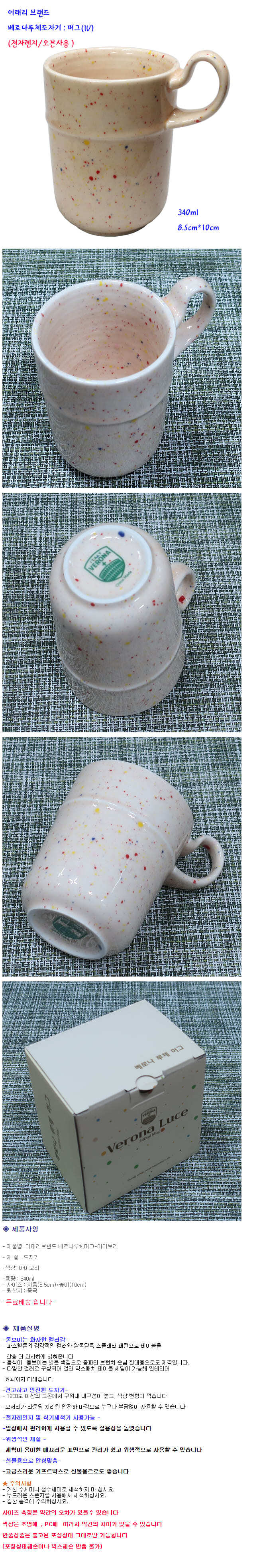 베로나루체 머그컵 가정 카페 커피잔 물컵 머그잔 340ml 아이보리