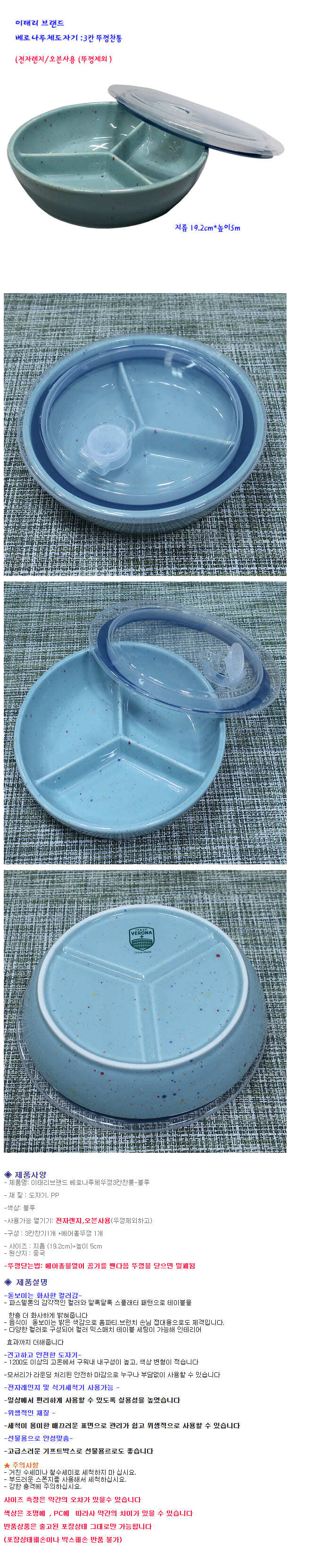 베로나루체 나눔접시 뚜껑 세트 세칸 찬기 반찬 그릇 3구 접시 블루