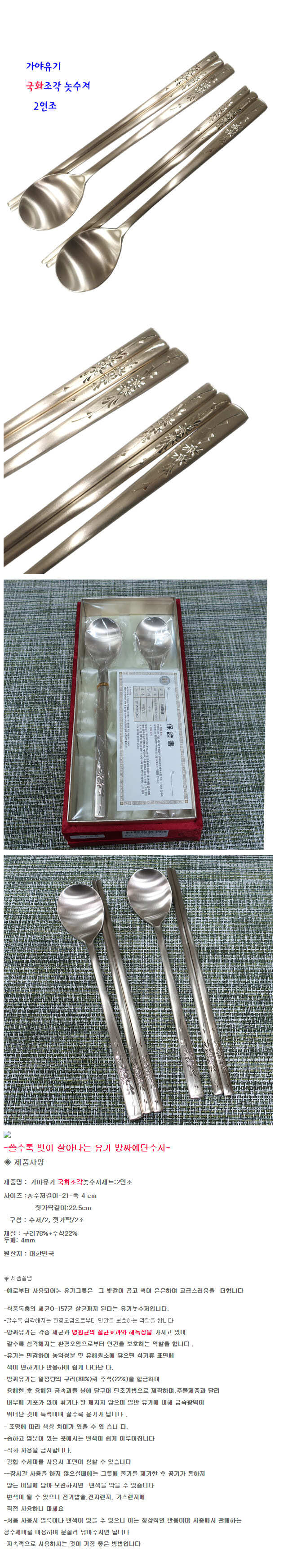 가야 놋수저 세트 국화 숟가락 젓가락 예단 유기수저 2인 세트