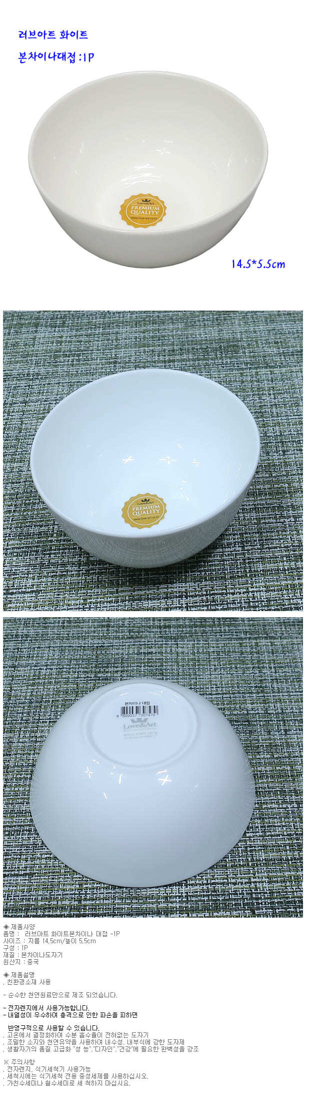 본차이나 대접 면기 비빔밥 그릇 도자기 국그릇 화이트 14.5cm