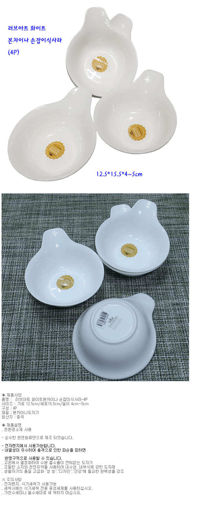 본차이나 도자기 앞접시 손잡이 그릇 식사라 미니접시 4p